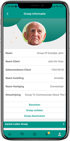Als een boodschap moet worden gedaan of een afspraak met de dokter is aanstaande waar iemand bij aanwezig moet zijn, kun je dit gemakkelijk delen met de overige leden - allemaal vanuit de app. Berichten bijvoorbeeld gerelateerd aan de zorg of persoonlijke interesses kunnen worden verstuurd naar de verzorgenden.