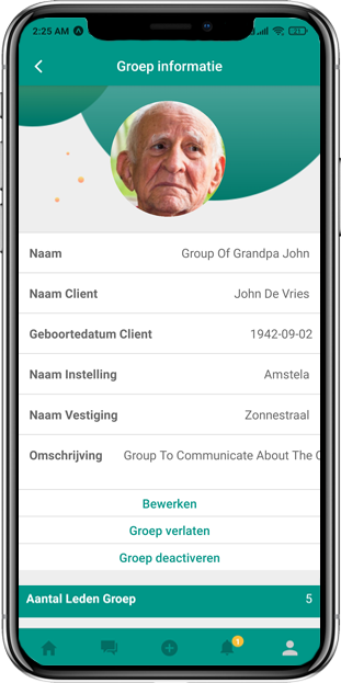 Degene die de groep aanmaakt beslist wie toegang heeft tot de groep en elk lid kan voor ieder bericht bepalen of deze gedeeld wordt met de familie of ook met de verzorgenden.